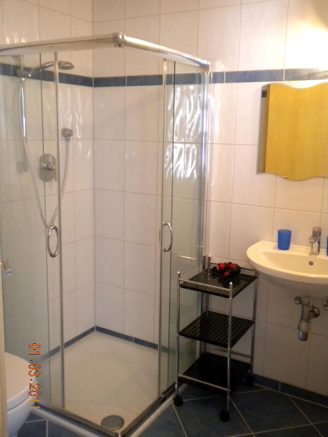 Des weiteren gibt es noch ein Bad mit Dusche und WC. Bettwäsche, Handtücher und Fön werden von uns zur Verfügung gestellt. Bei Bedarf kann Ihnen gegen einen geringen Aufpreis ihre Wäsche gewaschen und gebügelt werden.